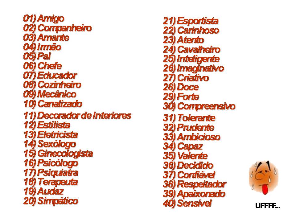 "Têm lhe sido ensinado a ser delicado para com os outros e duro para consigo mesmo. Isso é um absurdo. Eu lhe ensino que a primeira e mais importante coisa é ser amoroso para consigo mesmo. Não seja duro; seja delicado. CuideGrandes mulheres Mulheres grandes Toda essência possível Farta exuberância Sensual com sua fartura De uma imensidão arrojada Firme e positiva no que quer Ama-se e ama Forte Arrebata me cala Enche-me com sua formosura Não importa o tamanho quero sua guloseima Poty - 06/02/2014de si mesmo. Aprenda como se perdoar, cada vez mais e novamente; sete vezes, setenta e sete vezes, setecentos e setenta e sete vezes. Aprenda como perdoar a si próprio. Não seja duro; não seja antagônico consigo mesmo. Assim você irá florescer. Nesse florescimento você atrairá alguma outra flor. Isso é natural. Pedras atraem pedras; flores atraem flores."
